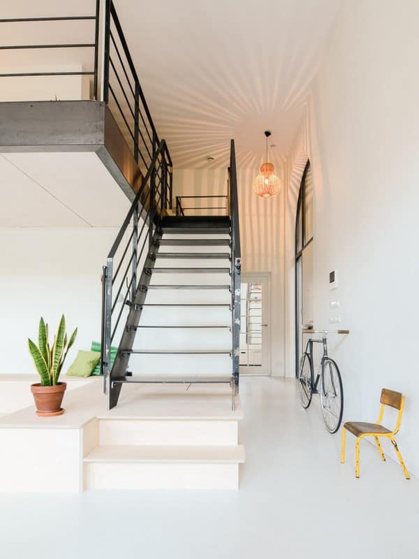 Ưu tiên sử dụng cầu thang nhỏ, gọn nhẹ để tạo nên vẻ thanh thoát cho ngôi nhà. Bạn có thể sử dụng cầu thang với các bậc thang hở để giảm bớt sự nặng nền cho tổng thể ngôi nhà. Bên cạnh đó, bạn phải biết linh hoạt sử dụng cầu thang cho nhiều mục đích khác nhau. Ngoài chức năng chính là để kết nối tầng trệt với tầng lửng, cầu thang còn có thể sử dụng để phân chia khu vực phòng khách & phòng bếp. Gầm cầu thang có thể biến tấu cho nhiều việc khác như dùng làm tủ chứa đồ, tủ sách, khu giải trí….