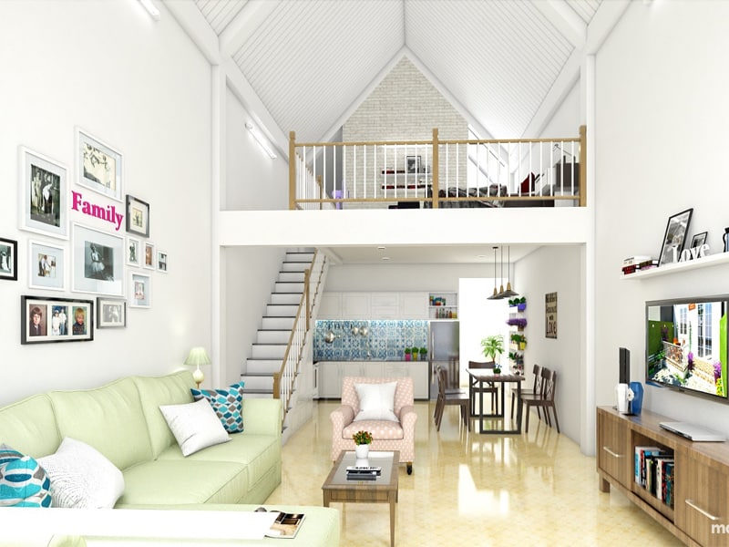 Bạn cần tạo được không gian mở cho căn gác lửng để trông chúng thoáng đãng, rộng rãi. Màu sắc góp 1 phần không nhỏ cho việc này. Sử dụng các màu sơn sáng sẽ tạo hiệu ứng thị giác như mong muốn. Những màu được chuyên gia khuyên sử dụng như màu trắng, pastel, kem hay lam nhạt… Nên tránh tông màu nóng như đỏ, cam hay tím… bởi do chúng sẽ tạo cảm giác bí bách, nóng nực.